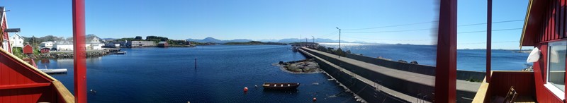 2 etasje. 2 soverom med sengeplass til 7 stk, stue og kjøkken og bad. fin varanda med panoramautsikt over havnen og Bjørnsund.