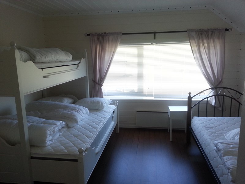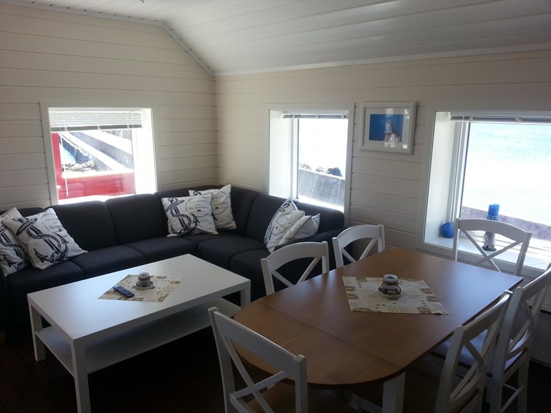 1 etasje: 2 soverom med sengeplass til 5 stk, stue, kjøkken og bad. Fin varanda som henger over sjøen. Utsikt over havnen